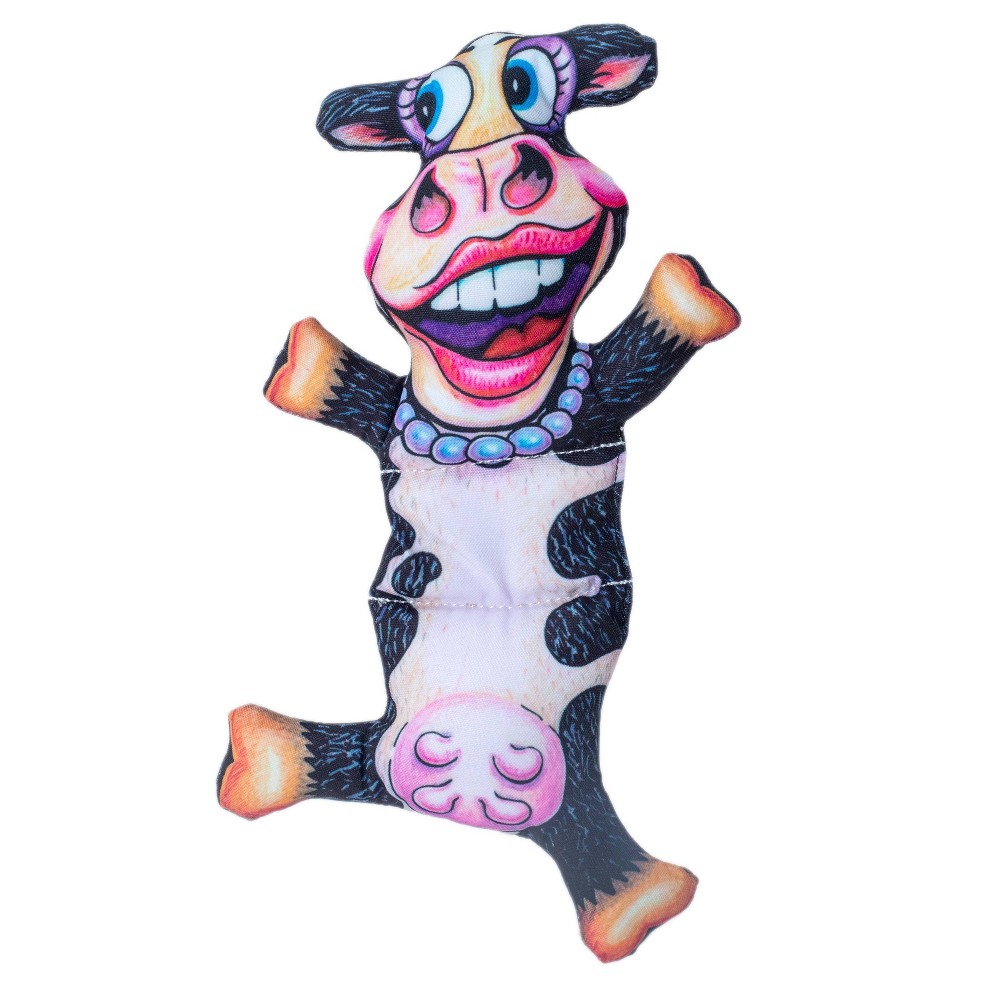 Big Moo will stand up to whatever your dog dishes out. She's a barnyard charmer - really just a tough softy - designed to flop and whack your pup about the head as she's shaken silly… Very entertaining if you're a dog!
