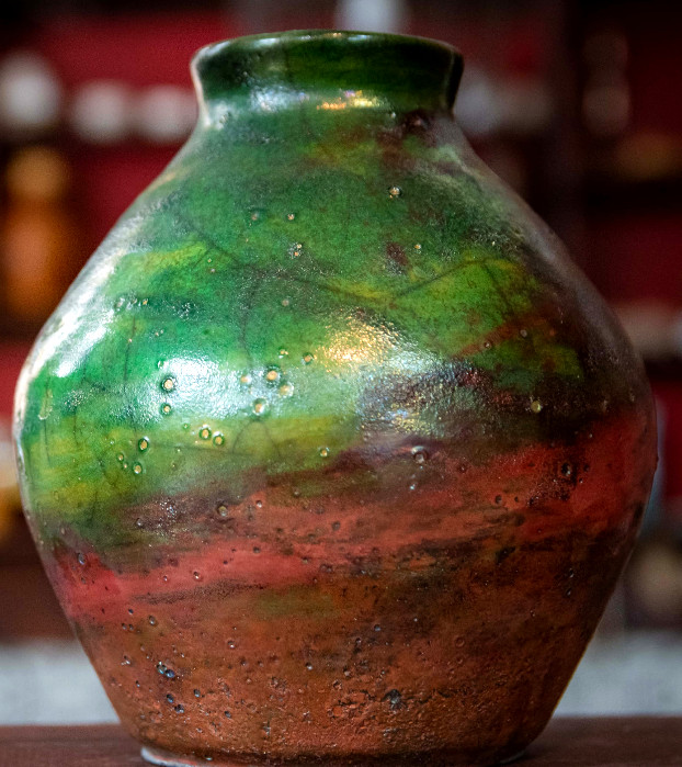 thealchemistspottery posted: " Clematis in full bloom in the morning light We tried out a new shape on the wheel. Kind of looks like it could be a cookie jar, no? The Alchemist's Studio with grapes taking in the summer days Hera shared the story of her heart.Hera's Heart$140 "