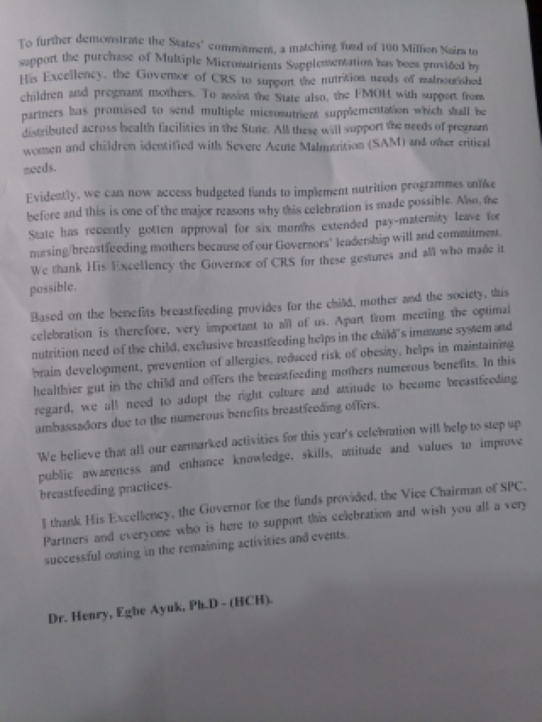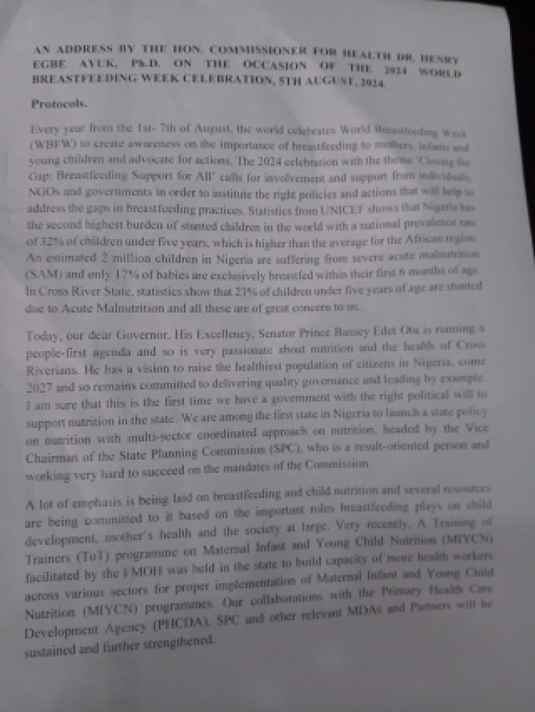 Dr Ayuk made this known today at his calabar office while addressing a press briefing to mark the world Breastfeeding week 2024.