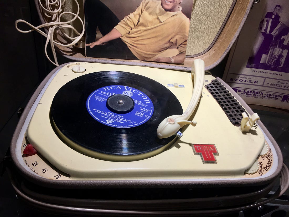 Portable record player – the Oscar goes to Teppaz… the sound of modernity … and freedom … the sound of the Sixties …For only one day in my life, 50 years ago, I saw, touched, and heard the most incredible music machine of my life. I saw it for the second time yesterday, in April 2025, and I was just as mesmerized. But it was behind a glass exhibition case – untouchable and silent – with a 1963 Paul Anka record on the turntable. The Oscar for Best French Export Company in 1962 goes to Marcel Teppaz and his manufacturing business, called Teppaz. His most successful product was the “Oscar” model of his innovative portable record player, the medium for listening to vinyl microgroove records. It was a small briefcase with a turntable – the “Portable Teppaz” – which became an icon of postwar innovation and pop culture. In the 1950s and 1960s, few objects captured the spirit of youthful freedom and musical exploration in France like the Portable Teppaz Oscar. The Portable Teppaz Oscar was one of the first truly portable record players, allowing music lovers across France to bring their records into parks, onto riverbanks, or to gatherings in cafés and apartments. It democratized music listening at a time when access to records was becoming more affordable. Marcel Teppaz, born on 26 May 1908 in Serrières-de-Briord, France, came from a family that manufactured spinning mill mechanisms. Marcel established his own radio and amplifier equipment assembly company in 1931 on Rue Jarente in Lyon. In 1937, he launched a new amplifier business with 30 people, moving into larger premises. During the Second World War (1939-1945), the company closed and Teppaz entered the army. He was captured as a prisoner-of-war until his escape, although I couldn’t find details of this. In 1941, he had the idea of replacing the hand-cranked phonograph drive with a small electric motor which led to the assembly of the record player from 1952. In 1952, approximately 600 employees on the assembly lines on Boulevard de la Croix-Rousse in Lyon put together the 1,500 parts, selling 600,000 devices. The Portable Teppaz Oscar was manufactured from 1958 to 1964, with the Oscar II model manufactured from 1964 to 1968. The first compact, lightweight Portable Teppaz Oscar was a creamy-white Bakelite base and turntable with built-in speakers in a small briefcase with rounded corners, a domed lid, and a handle. The Oscar II was square-shaped. It had a tube amplifier consisting of a UCL 82 and a UY 85 – standard and reliable for the time. The electric motor operated at 220V so no transformer was needed. It played three types of black, pressed vinyl records based on the revolutions per minute (rpm) – the speed that the record turned – but could play all record speeds: 16, 33, 45, and 78 rpms (78 rpm records ceased manufacture in 1959). - 45 rpm records (with a single song on each side): 7 inches (18 centimetres). - EP extended play records (with two or three songs on each side but up to eight tracks at 45 rpm): 7 inches (18 centimetres). - LP long plays (a full album at 33 rpm): 12 inches (30 centimetres). To be accurate, the Teppaz portable record player could be carried like a briefcase but did not work while you were walking down the street with it. It was portable in the sense that it could be easily moved from place to place — to a friend's house, a park, a picnic, etc. To play a record, the device needed to be placed on a stable surface like a table, bench, or the ground. Records are sensitive to vibration and movement. If you tried to walk while playing the record, the needle (stylus) would skip or scratch the disc — or even damage both the needle and the vinyl. So, it was portable to carry but stationary to play. The Oscar model sold millions of units locally and internationally, a true success until 1970. Marcel Teppaz died on 15 August 1964 in Saint-Alban, France, from a heart attack. After his death, his wife and son-in-law continued the company's operations until 1974. Today, the Teppaz Oscar remains a piece of vintage French design — a charming symbol of how music moved from the concert hall and cabaret to become a personal, portable companion. There is now a resurrection of the portable record player due to the “vinyl revival.” The new models are cheap and convenient but the sound fidelity is not high – but neither were the original Teppaz models. Many companies are reproducing the concept – mainly for fun – and most still re-create the briefcase design, while some are retro 70s-style models, or more creative. Although it took me 50 years to re-see the innovative French Portable Teppaz Oscar record player, after living in France, I had never forgotten its charm. It was the sound of freedom. And for me, it was modern, so excitingly modern. Can’t see the whole article? Want to view the original article? Want to view more articles? Go to Martina’s Substack: The Stories in You and Me MY PARIS WEBSITE AND ALL THINGS PARISIAN Photographer: Martina Nicolls PIP DECKS, the fun and engaging how-to guides for business. You're currently a free subscriber to The Stories in You and Me . For the full experience, upgrade your subscription. |