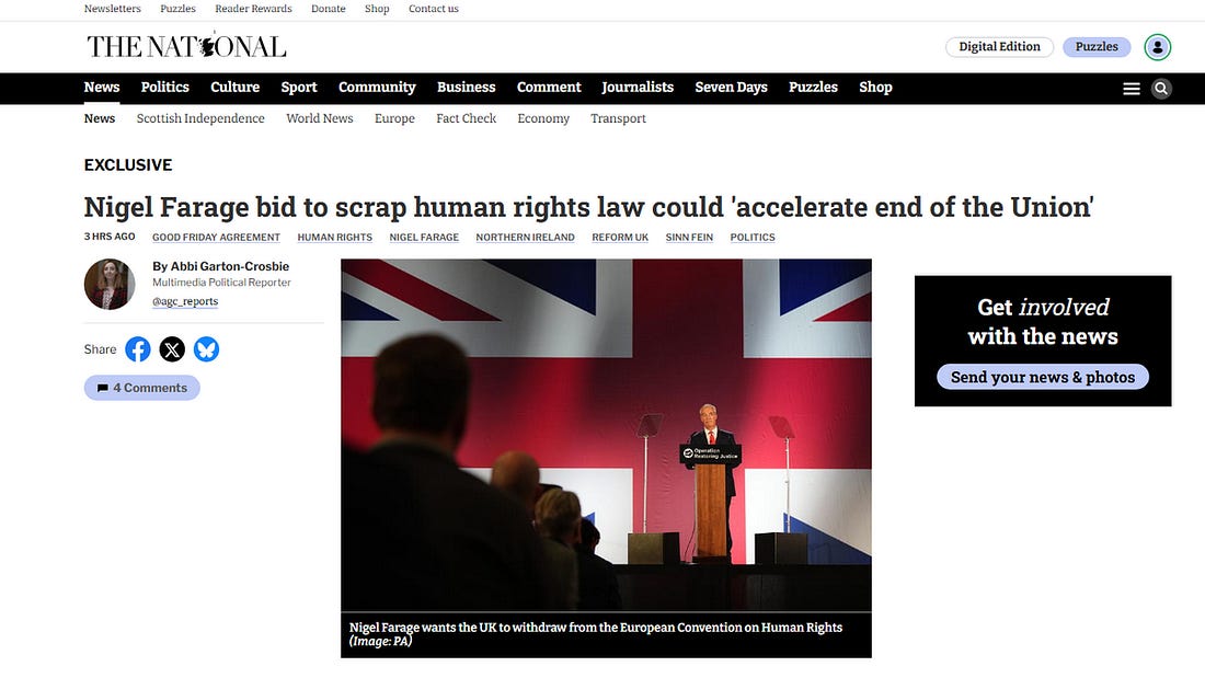 Shall we add this - Nigel Farage bid to scrap human rights law could 'accelerate end of the Union' - to the already lengthy list of things that were supposedly going to accelerate the end of the Union?
