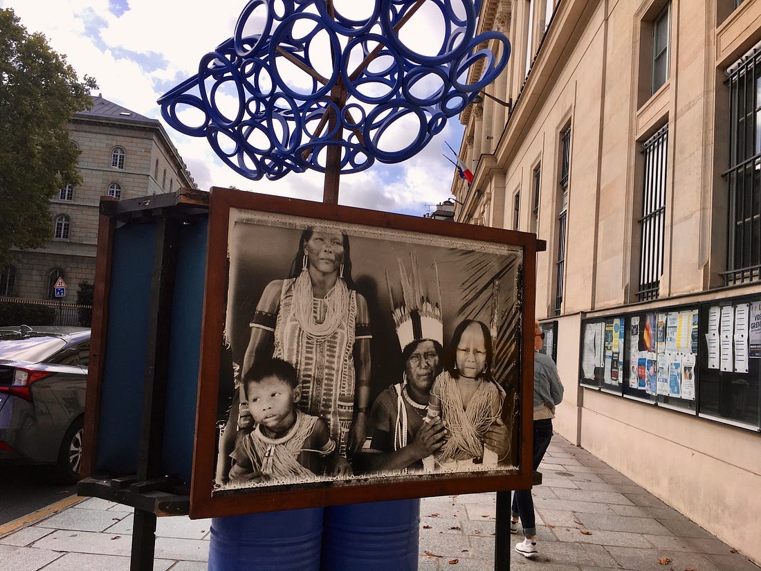 Art, Activism, and the Amazon rainforest: photo exhibition on a Parisian street… culture and climate: the legacy of French photographer Nicolas Reynard …Paris becomes an open-air gallery from 12 September to 12 October 2025. Photoclimat, the first free outdoor environmental and social biennial, transforms multiple streets across Paris into spaces for reflection, dialogue, and awareness. With 44 artists showcased, the event blends art and activism, offering new ways to engage with global challenges. Photoclimat unfolds in the streets, removing barriers of access, cost, and exclusivity. Its mission is to raise awareness about environmental and social issues through art, the lens, and human conscience, by giving visibility to the work of non-governmental organisations (NGOs) in civic engagement. In France, more than 12 million people (almost 20%) belong to an NGO or civic foundation. One of the most striking contributions this year at the Paris Photoclimat event is French photographer Nicolas Reynard’s exhibition “Amazon: Ethnic Nests.” Reynard, who captured fragile landscapes and marginalized communities, turned his lens in 2004 to the traditional culture and nature of the Amazon rainforest. Nicolas Reynard, born on 4 July 1959, wrote of his photography: “I strive to create true iconography that, I hope, can echo the anger of those fighting to protect the last free ethnic groups.” His photography includes the Gabras of Kenya, the Moken of Thailand, the Chipaya of Bolivia, and the ethnic nests of the Amazon. He partnered with Le Figaro Magazine and Les Maisons du Voyage to advocate for the preservation of heritage and environment. With the Brazilian government, Reynard participated in expeditions in 2004 tasked with approaching unknown Amazonian tribes to demarcate their land to ensure preservation. For this photo-journalism project, he provided photography for National Geographic, Le Figaro Magazine, and Géo during his travels to the Amazon rainforest while gathering testimonies on these cultures. In “Amazon: Ethnic Nests” displayed at Saint-Sulpice Square in the 6th arrondissement, Reynard captures the handwoven shelters and communal dwellings of Amazonian people. These structures are homes, but also expressions of identity, resilience, and ecological knowledge passed down through generations. He did not complete his work as he died at the age of 45 on 11 November 2004 near Manaus with photo-journalist Joel Donnet and a Brazilian pilot Paulo Sergio de Miranda Correa. While reporting and flying over the Amazon rainforest, their seaplane crashed into the Rio Negro. Climate activism aims to preserve cultures, not just carbon and trees. Twenty years after Reynard’s death, his work resonates with Photoclimat’s mission because it reveals how culture and climate are inseparable. To protect the Amazon rainforest is also to protect the people who live symbiotically within it. Can’t see the whole article? Want to view the original article? Want to view more articles? Go to Martina’s Substack: The Stories in You and Me More Paris articles are in my Paris website The Paris Residences of James Joyce Rainy Day Healing - gaining ground in life You're currently a free subscriber to The Stories in You and Me . For the full experience, upgrade your subscription. |