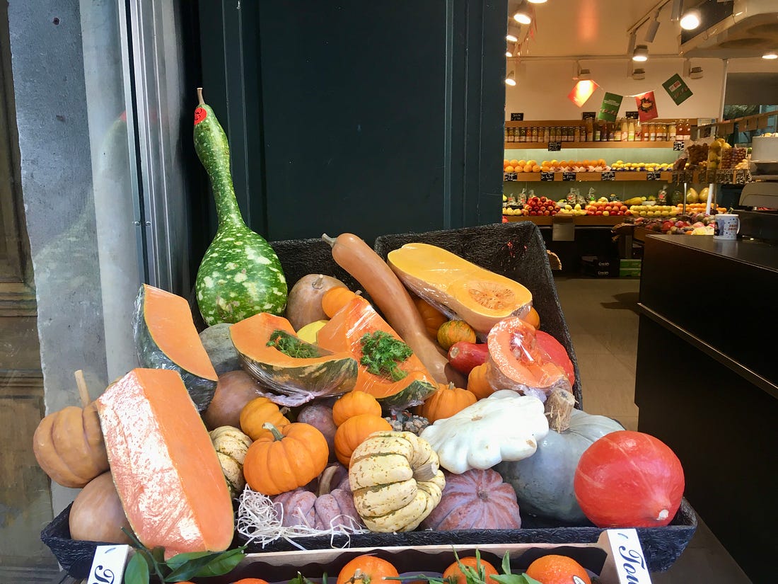 Paris Pumpkins: a Halloween affair… myth, mischief, and magic in Paris and in Halloween pumpkins and pastries ...Pumpkins are everywhere in Paris: not only the rustic kind, but also their chic cousins in all sorts of shapes and colours. Once a symbol of harvest and hearth, they’ve become the international ambassadors of Halloween — and the faces of myth, mischief, and magic. The pumpkin story begins, curiously enough, not with pumpkins at all, but with turnips. Long before American settlers discovered the New World squash, the Irish carved lanterns from turnips to ward off wandering spirits, especially one known as Stingy Jack who tricked the Devil and roamed the earth with only a coal in his hollowed turnip. When Irish immigrants brought this tale to America, they found pumpkins larger, easier to carve, and far more photogenic, and so the Jack-o’-Lantern was born. In Paris, pumpkins have become sculptural, painted on macarons or transformed into confections like the ones I spotted yesterday: a skull-topped chocolate cake, a chocolate ghost, a powdered ghoul, and a pumpkin pastry so bright it could light the way through a Montmartre mist. Halloween itself is a curious transplant here. France, with its Catholic traditions and Toussaint (All Saints’ Day), didn’t always embrace the costume-and-candy craze. Times have changed. Boulangeries (bakeries) in Paris sell wonderfully elaborate crafted edible skeletons, ghosts, and pumpkin faced pastries. I’m celebrating Paris pumpkins for Halloween and the cross-cultural alchemy of myth, mischief, and magic, and the delightful absurdity of ghosts in Paris pastry shops. Can’t see the whole article? Want to view the original article? Want to view more articles? Go to Martina’s Substack: The Stories in You and Me More Paris articles are in my Paris website The Paris Residences of James Joyce Rainy Day Healing - gaining ground in life Invite your friends and earn rewardsIf you enjoy The Stories in You and Me , share it with your friends and earn rewards when they subscribe. |