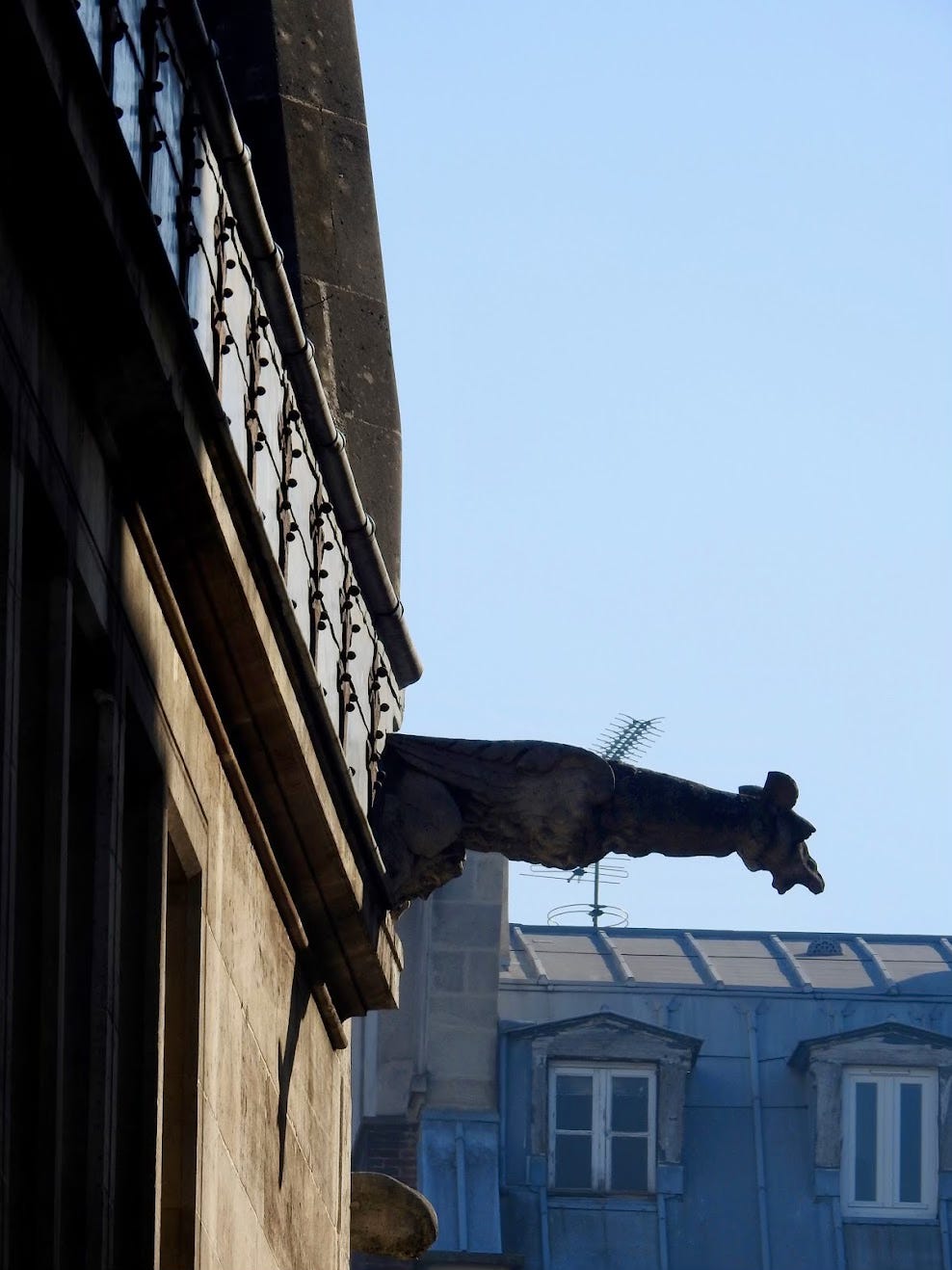 Gargoyles: stone watchers of Paris… grotesque beasts, high on cathedral eaves, with eyes on society …I am re-reading The Hunchback of Notre-Dame, and once again Victor Hugo has me at the top of the Notre-Dame Cathedral with a vertiginous viewpoint of 15th century Paris. It is Paris seen by the hunchback Quasimodo. I am inevitably led back to gargoyles: the grotesque, half-imagined creatures that cling to the edges of ancient cathedrals. Hugo writes obsessively about the cathedral’s architecture, symbolism, and erosion by time and neglect. But here’s a small literary surprise: Victor Hugo doesn’t actually focus on gargoyles as such in The Hunchback of Notre-Dame. It’s me that is obsessed with them, and every time I walk by the cathedral, I look up to see if they are looking down at me. Hugo famously wrote that “books would kill buildings” and that the printed word would replace stone as humanity’s great record. Notre-Dame, according to Hugo, is a vast text written in arches, towers, and scars. When Quasimodo looks out of the cathedral, over Paris, the reader sees the city through his expansive view, like a gargoyle on the cathedrals roof tops. The iconic gargoyles that I see on the Notre-Dame Cathedral were added during Eugène Viollet-le-Duc’s 19th century restoration. They are mostly chimeras, the decorative figures added in the 1800s. They are fantasies, not medieval originals. But here’s the delicious irony: Hugo’s novel, published in 1831, inspired that restoration. First, a clarification: true gargoyles (gargouilles) are waterspouts designed to channel rainwater away from stone walls. They absorb the rain so that the walls don’t erode. They are made of stone in the form of beasts or scary faces. Gargoyles act like facial expressions representing a city’s “body.” They externalize a city’s anxieties, its historical guilt, and its suppressed or actual violence; they are witnesses, unable to intervene, but essential to a city’s meaning. In medieval France, gargoyles served several roles. They were functional, diverting water away from the building. They were also psychological, moral, and apotropaic, giving form to fear and warding it off by embodying it, and reminding citizens not to sin, because the gargoyles will see everything. Hugo understands the duality of gargoyles: both fear and fascination. Gargoyles remain on ancient Parisian cathedrals, crouched at the edges of their roof tops, as the stone watchers of Paris. In literary terms, gargoyles are on the edge of society as symbols of marginal observers. They don’t move, don’t speak, don’t change; they are watching what happens in the city, wherever that may be. As metaphors, gargoyles function as the eyes to society, morality, and power. Gargoyles live above the crowd, outside the sanctuary of the cathedral, and exposed to weather and time. In this sense, they mirror characters who are socially marginalized, morally ambiguous, and physically or emotionally “different” from society’s norms. The fictional character, Quasimodo, is an obvious example of gargoyles in literary form. He occupies the same vantage point as the gargoyles: elevated yet isolated, essential yet unloved. Like gargoyles, he belongs to the structure of the cathedral, but not the society it serves. Both Quasimodo and the gargoyles watch history unfold but cannot descend the cathedral to change society. Medieval cathedrals placed their gargoyles outside for a reason. Inside the cathedral represented theology, order, and light. Outside the cathedral represented sin, chaos, and fear. Re-reading The Hunchback of Notre-Dame in a time of cultural fracture and historical reckoning, gargoyles feel relevant today. In today’s times, order is fragile, society requiresguardians, and someone needs to observe history, even if that someone is weathered, misunderstood, and never invited inside. Can’t see the whole article? Want to view the original article? Want to view more articles? Go to Martina’s Substack: The Stories in You and Me More Paris articles are in my Paris website The Paris Residences of James Joyce Invite your friends and earn rewardsIf you enjoy The Stories in You and Me , share it with your friends and earn rewards when they subscribe. |