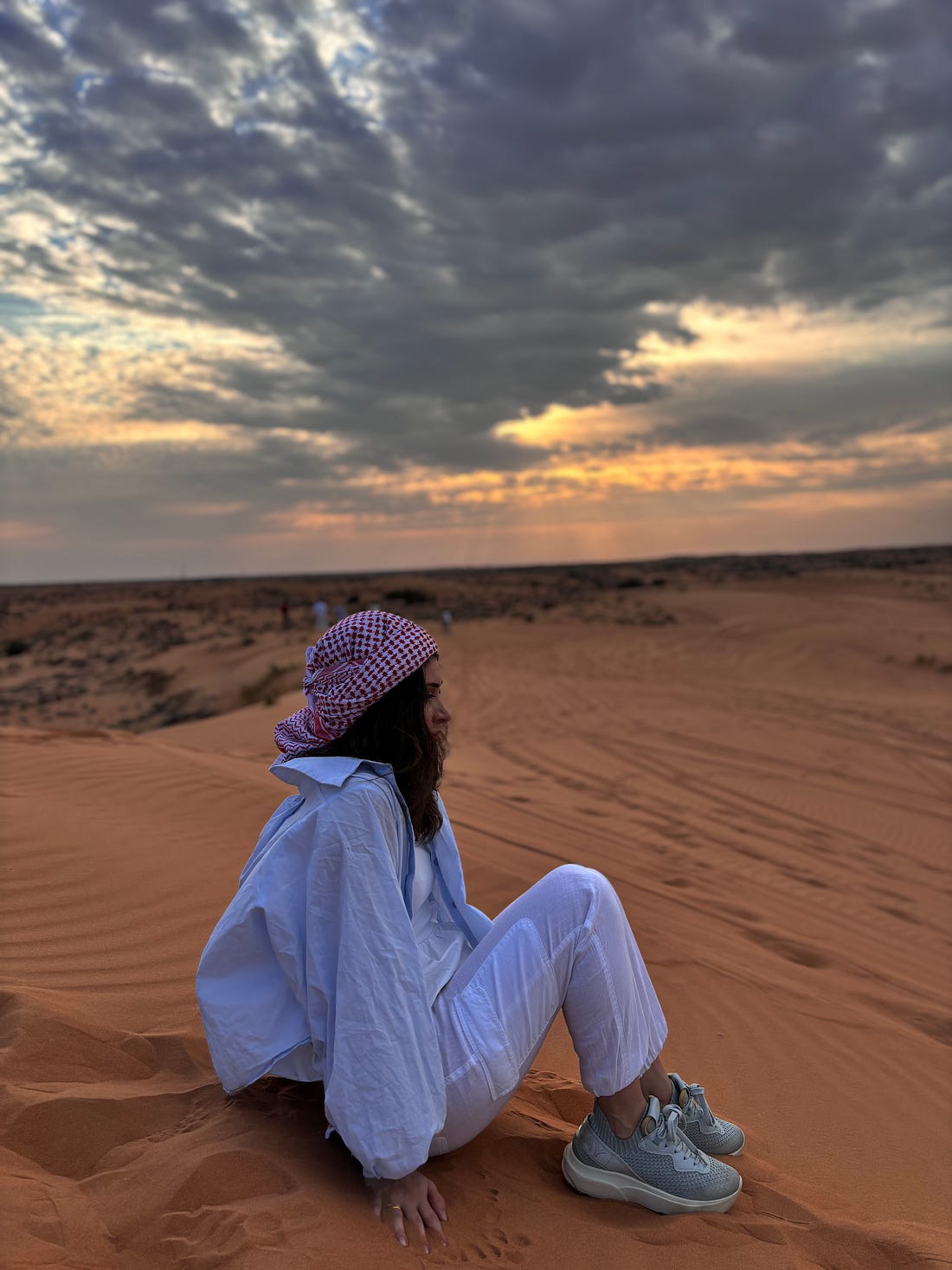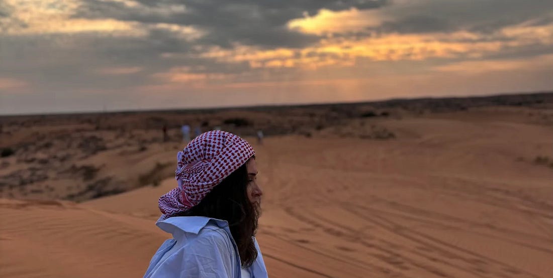 I could write a book from one photograph – this photograph – not because of who is in it, but because it shows a moment and creates a world at the same time: a complete emotional landscape contained within a single frame. Let me try to explain why. The sky is not background. The heavy, textured, almost sculptural clouds press downward, like an architectural ceiling, and yet, there is golden light breaking through. This tension between darkness and light creates the emotional tone of the entire photograph. It feels like a threshold moment, not quite darkness and not quite lightness, not quite despair, and not quite hope. The dune is movement without motion. The sand is alive with wind-drawn lines that are delicate, almost calligraphic. These are not random patterns but directional forces. They guide the eye inward, pulling me toward the subject, the person, then outward again toward the horizon. The indentations, the footprints, the tyre treads, and impressions, show signs that this place has been crossed, traversed, and someone has arrived. And yet, the vastness remains untouched. The figure is still. This is not a person in pose, but a person in a state of being. The body is positioned with extraordinary precision, whether intentional or instinctive: knees drawn but not closed, arms extended but not tense, a hand splayed into the sand is grounding but not holding, and the slight forward angle of the torso is alert, but not defensive. The person is neither resting nor moving. The details that shouldn’t matter, but do: the ring, the shoes without socks, the soft collapse of fabric around the elbows and knees, the structured head scarf, hair loose: always, something loose. These details create contradiction: prepared yet vulnerable, grounded yet transient, present yet elsewhere. The gaze is an unanswered question. Her eyes are not fully seen but their direction is noticed. She is not looking at the camera. She is not looking at the horizon. She is looking at something I cannot access, and that is the masterstroke. I must enter the image to imagine what she is looking at, thinking about, leaving behind, going to next, in solitude, in exile, with the people in the background, with the photographer. This is where the photograph becomes cinematic. It not only looks like a film still, but it also suggests a story before and after the frame. This is where the photograph becomes fundamental storytelling, where everything is in relationship to something else. The sky presses down; the sand stretches outward. The figure anchors the foreground; the horizon frees the distance. The textures of the clouds, the fabric, the sand, collaborate with one another; nothing competes. There is space: space for nothingness but nature, space for emptiness but life, and space for interpretation but meaning. What can I learn about storytelling from this photograph? Mystery is more powerful than clarity. Not everything needs to be explained. This image withholds information, and in doing so, it deepens the mystery. Composition is emotional, not just visual. Lines, textures, and positioning are not aesthetic alone, because they direct what I feel. Stillness can carry more intensity than action. There is no movement yet the photograph is alive with tension and possibility. Details are narrative anchors. A ring, a shoe, and a fold in the fabric are not incidental. They are entry points into a story. A single image can hold an entire book. This may be the most important lesson of all, because when I look at this photograph, I do not see a moment. I see chapters. I see a woman who has travelled, geographically, emotionally, and perhaps spiritually. I see a pause that is not an ending, but a reckoning. I see a landscape that mirrors an internal state. And I realize that storytelling is not about adding more. It is about seeing more. This photograph expands me. It sharpens my perception, deepens my curiosity, and reinforces the point that a story is everywhere, waiting to be noticed. This photograph does that. It does not ask for attention. It earns it. And then, it refuses to let me go. It holds me in so much that I have become obsessed with its potential. Can’t see the whole article? Want to view the original article? Want to view more articles? Go to Martina’s Substack: The Stories in You and Me More Paris articles are in my Paris website The Paris Residences of James Joyce Invite your friends and earn rewards